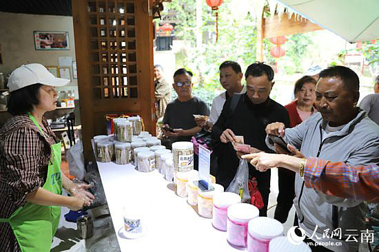 “您嘗嘗,胭脂果膏、牛肉干、野生菌……這些都是我們手工做的。”游客手握咖啡,走到村寨里的農(nóng)特產(chǎn)品一條街,攤主們說(shuō)著一口騰沖口音的普通話,攤主們熱情地招攬來(lái)自五湖四海的客人。