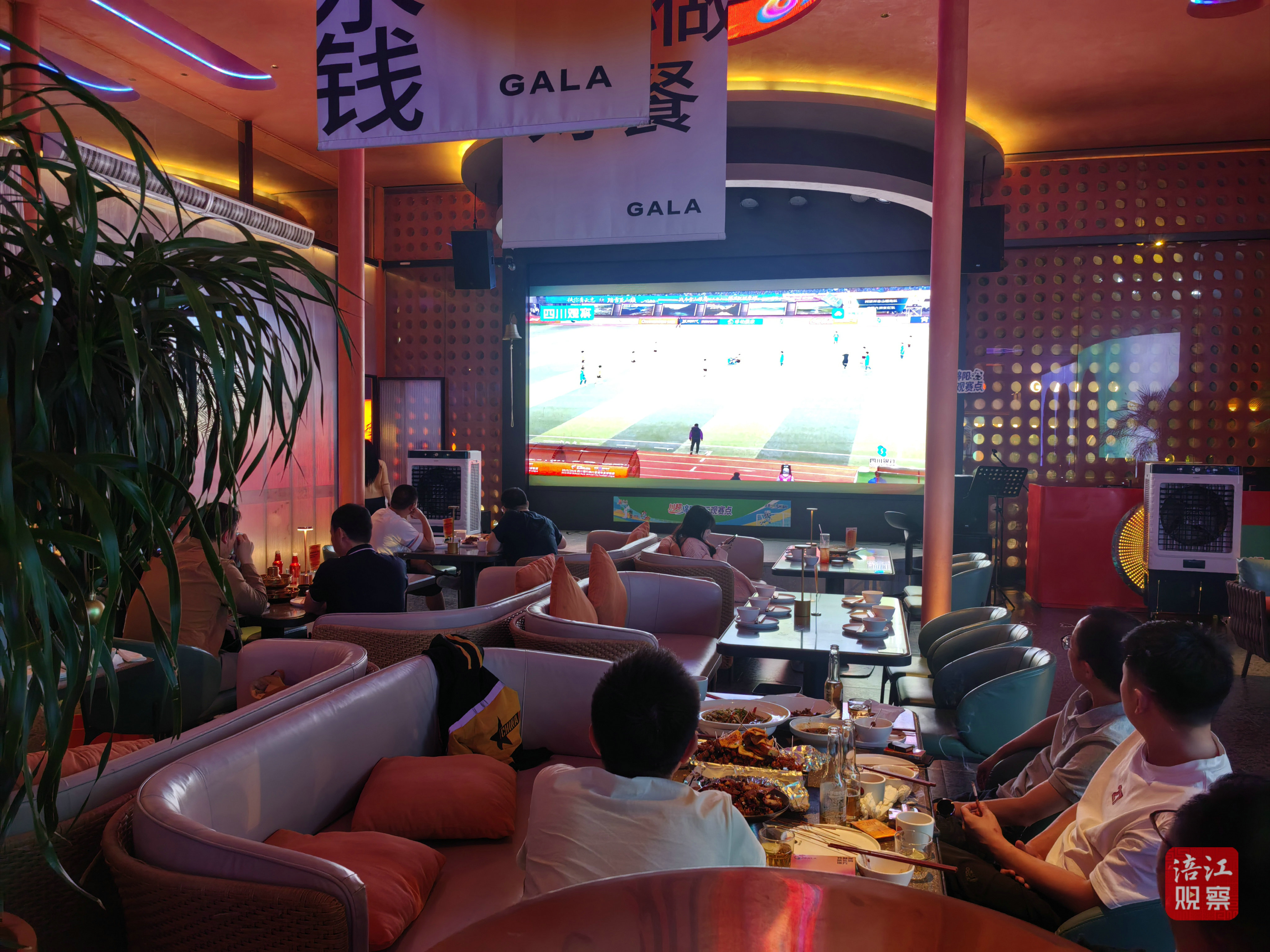比賽期間,桃花島GALA音樂餐吧吸引了大量顧客和球迷在此相聚,享受美食的同時(shí),觀看精彩比賽實(shí)況,為綿陽九洲長虹隊(duì)聲援。