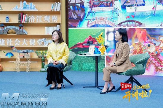 李海燕(左)在“涪江觀察開講啦”公益講座節(jié)目現(xiàn)場