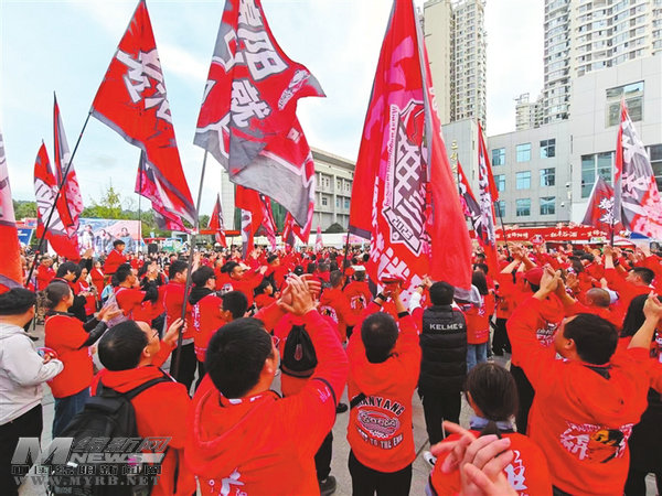 比賽尚未開始,激情已被點燃。綿陽和甘孜的啦啦隊在“樂享川超”專屬市集開展了活力PK。在這里,市集各檔口前人頭攢動,激情與消費(fèi)同步升溫。