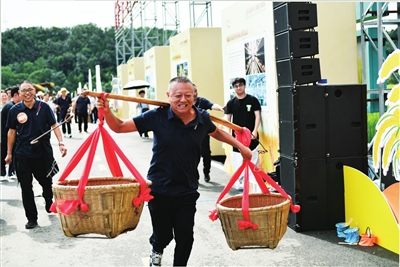 在梓潼田間地頭,一場妙趣橫生的農(nóng)耕趣事比賽熱烈開場。比賽中,最引人注目的當(dāng)屬豐收大作戰(zhàn)接力賽了。在“粒粒皆辛苦”環(huán)節(jié),選手們需要用長筷子夾起豆子,放入指定的容器中。看似簡單的動作,卻需要高度的專注和耐心。接下來的“袋鼠運糧忙”環(huán)節(jié),選手們套上麻袋,變身活力“袋鼠”,在賽道上蹦蹦跳跳地前進,展現(xiàn)出頑強的拼搏精神。最后的“扁擔(dān)接力賽”中,選手們挑起裝滿糧食的扁擔(dān),健步如飛地沖向終點,整個過程好玩又有趣。