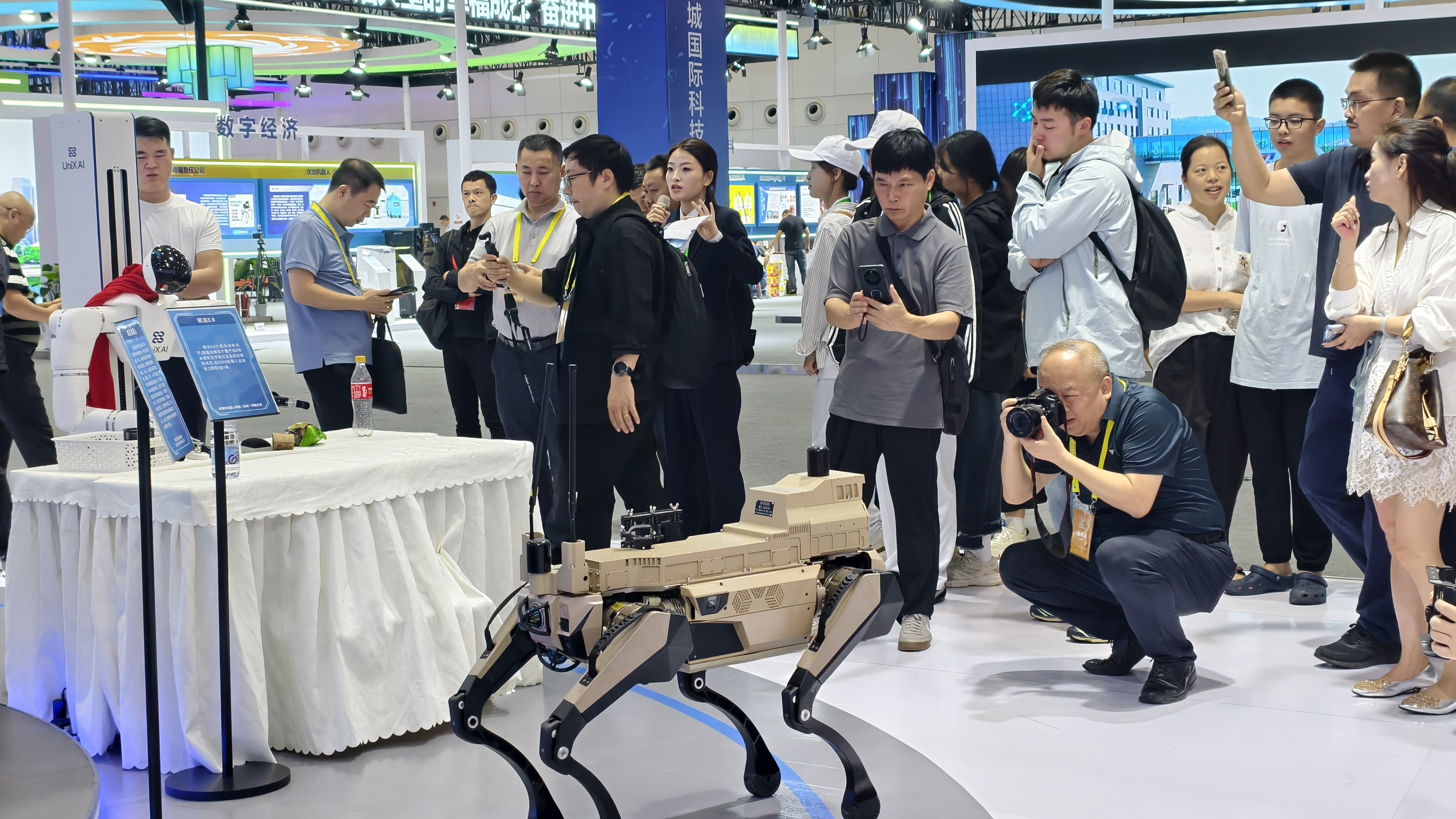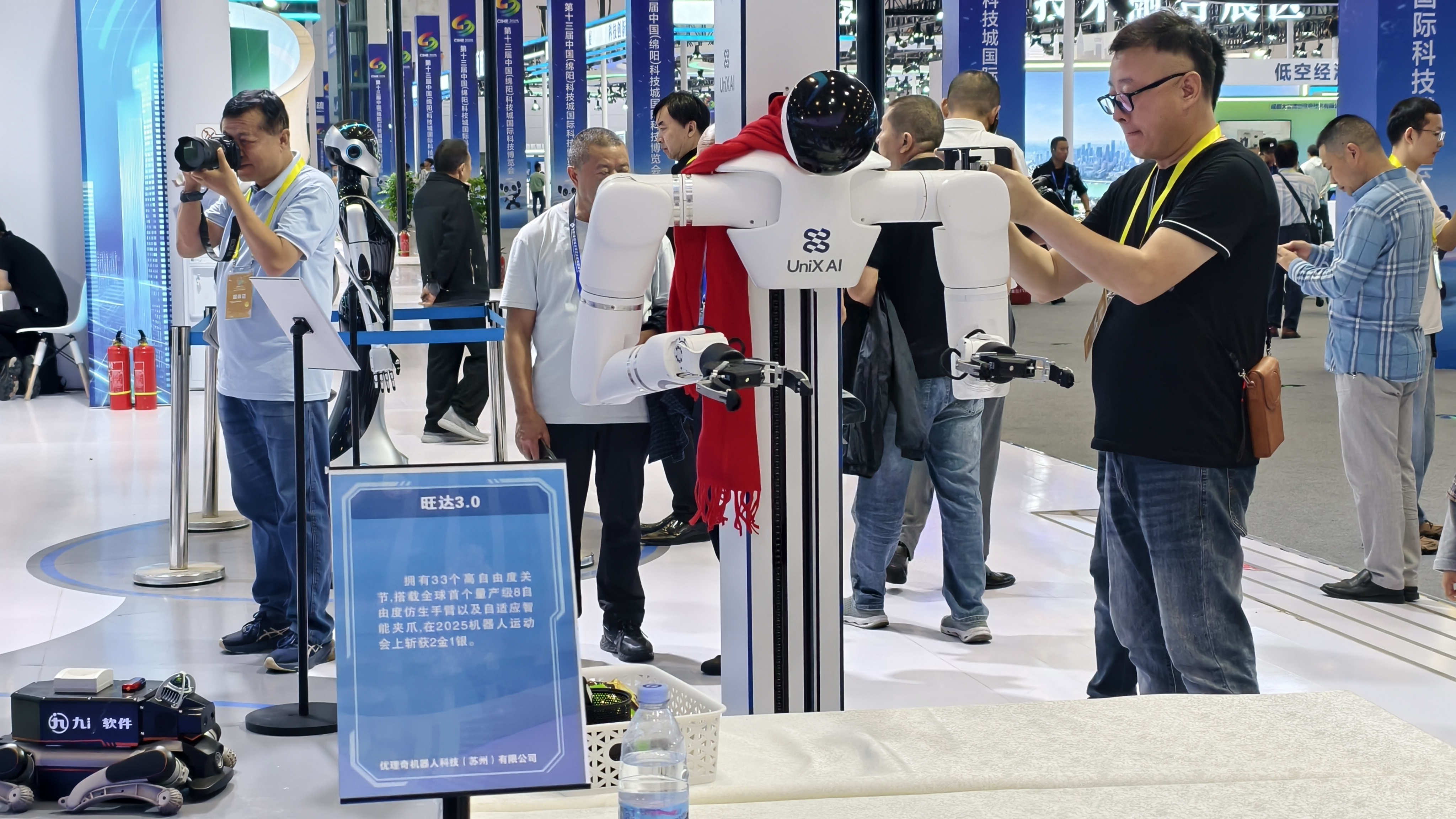 此外,“低空智行”運營服務平臺、四足機器人、旺達3.0機器人、長虹靈曦人形機器人、九洲無人機防控指揮車等前沿展品更是成為焦點,引得媒體記者紛紛拍照留念。