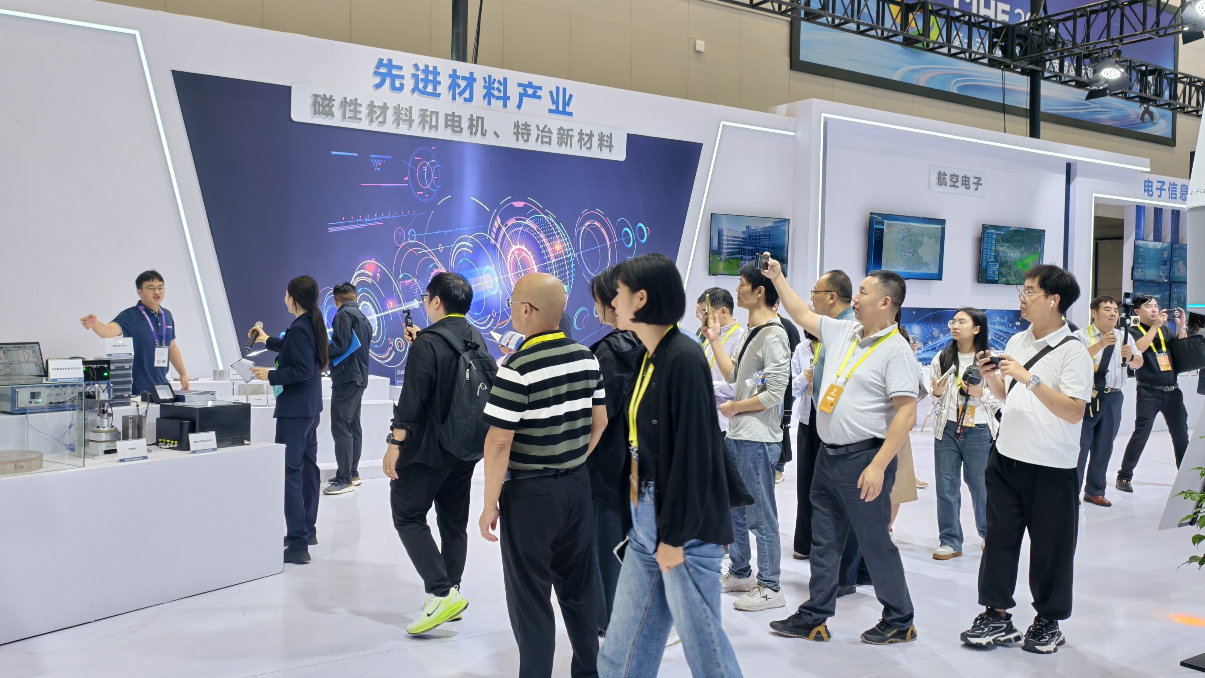 眾多媒體記者圍繞在e-Flash超高劑量率電子射線放射治療系統(tǒng)前,仔細聆聽講解。磁性材料和電機、特冶新材料等展品也吸引了大量記者駐足交流。